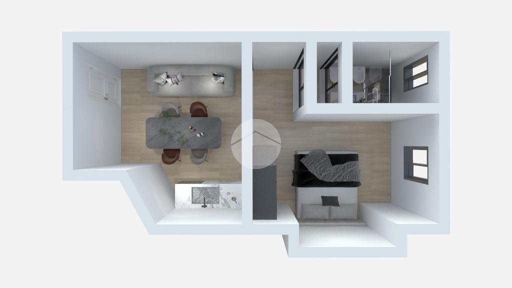 Ingresso diretto in zona soggiorno con cucina a vista disposta in posizione angolare, dotata di finestra con affaccio libero sul cortile condominiale. Proseguendo attraverso un comodo disimpegno, troviamo poi, con esposizione parallela ed opposta rispetto alla zona giorno, la camera da letto matrimoniale finestrata ed il bagno anch’esso finestrato e dotato di doccia. Entrambi gli ambienti hanno un tranquillo affaccio sulla corte adiacente. In fine completa la soluzione un’ampia cantina al piano seminterrato, ad oggi adibita ad uso taverna.