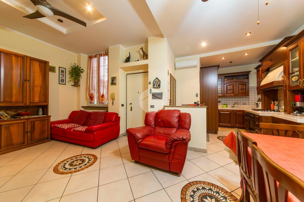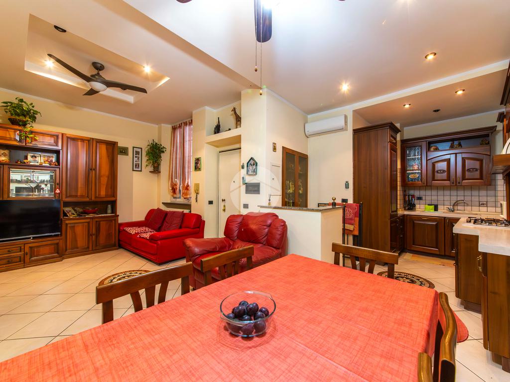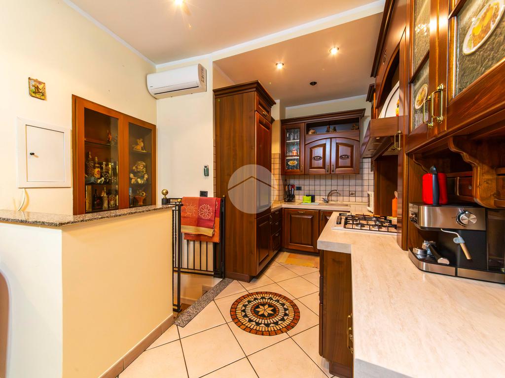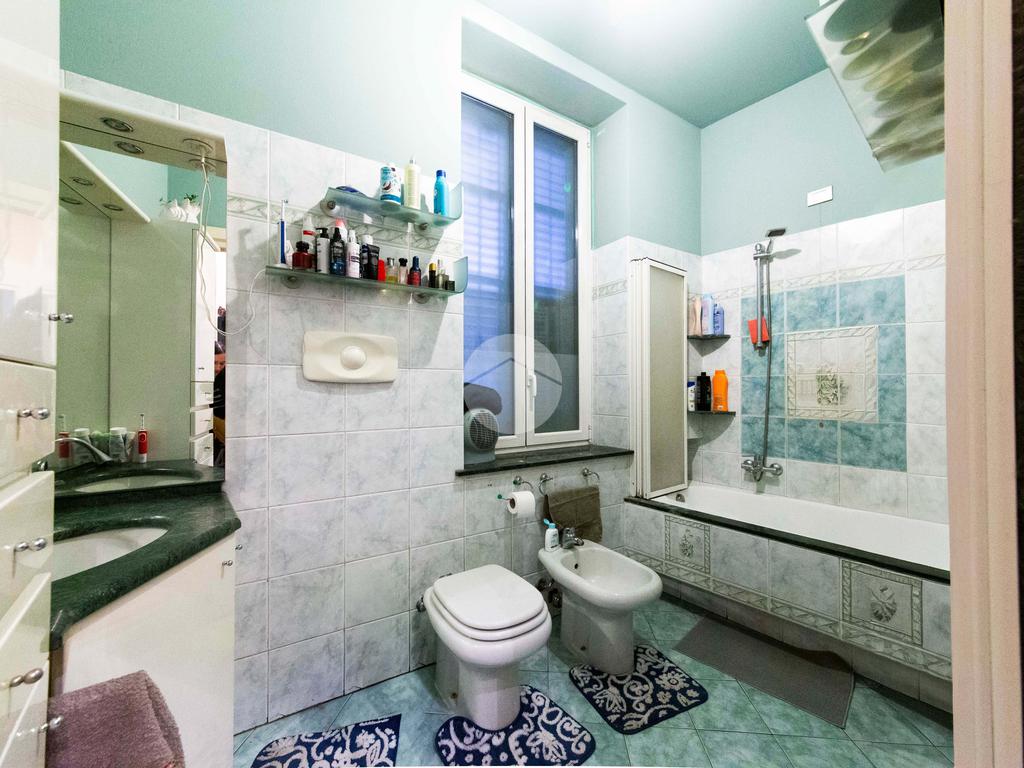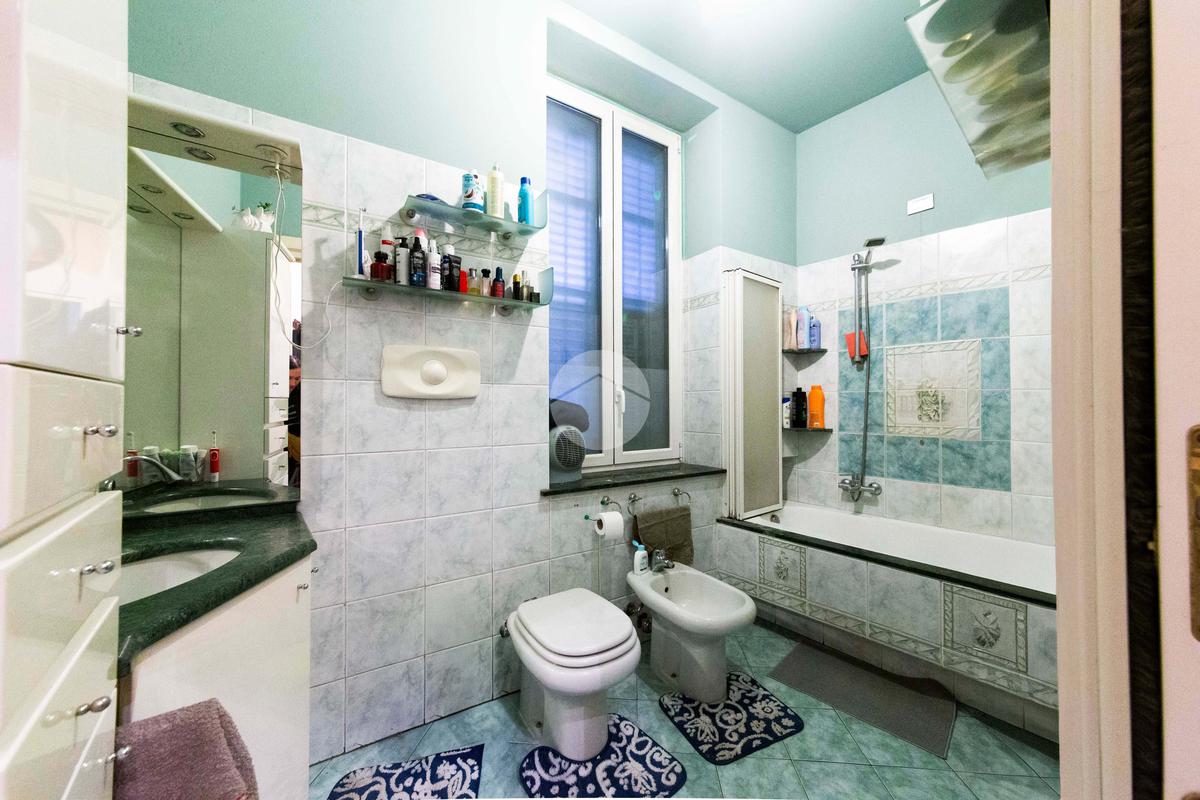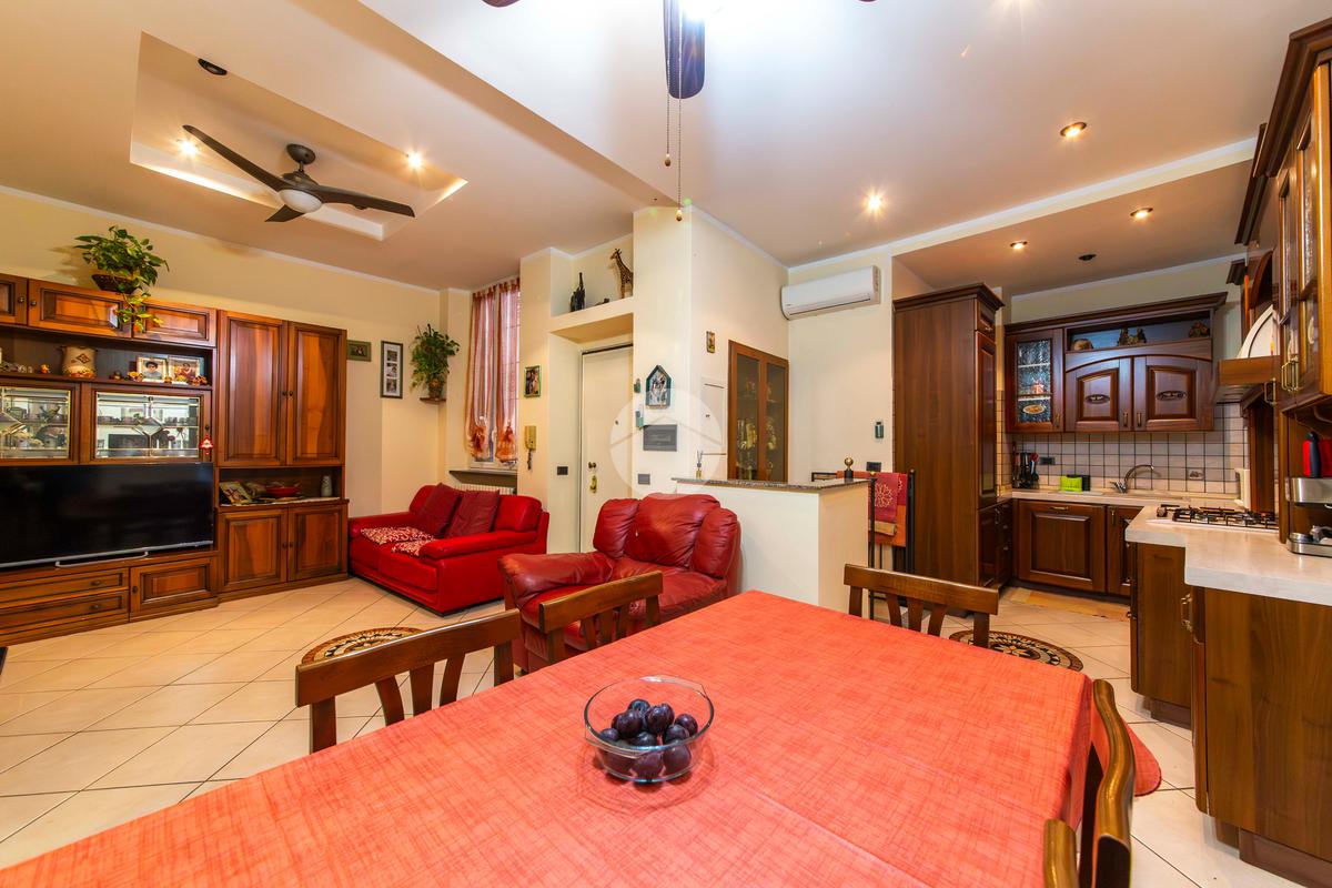 L'appartamento si presenta IN OTTIMO STATO INTERNO (ristrutturato una decina di anni fa) con pavimentazione in grès porcellanato di colore chiaro in tutti gli ambienti della casa e con rosoni in zona soggiorno, ad eccezione dei bagni in cui è presente, in uno grès dalla differente trama, e nell’altro marmo. Porte in legno, infissi in doppio vetro/PVC, porta blindata ed aria condizionata negli ambienti principali.