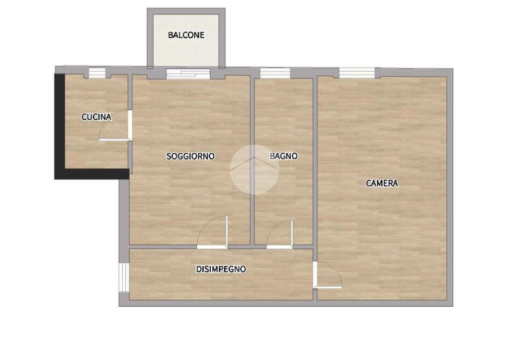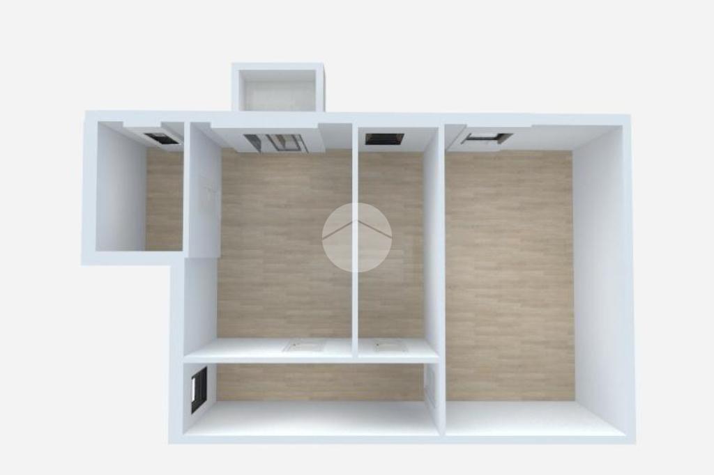 Ingresso in disimpegno, dal quale possiamo accedere ai vari ambienti della casa e dove troviamo, subito sulla sinistra, il soggiorno dotato di portafinestra che conduce sul comodo balconcino con affaccio libero sul cortile condominiale. Dal soggiorno accediamo anche al cucinotto a sua volta finestrato.