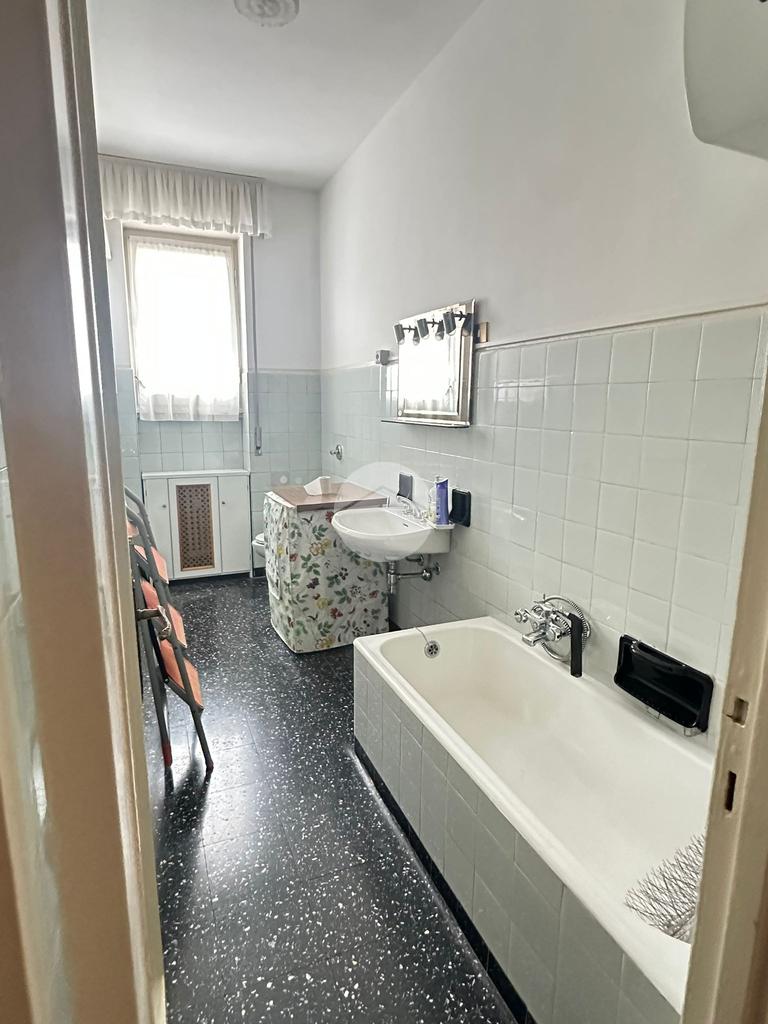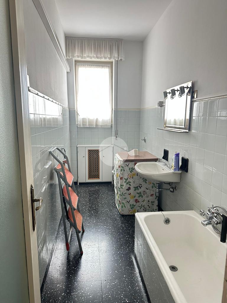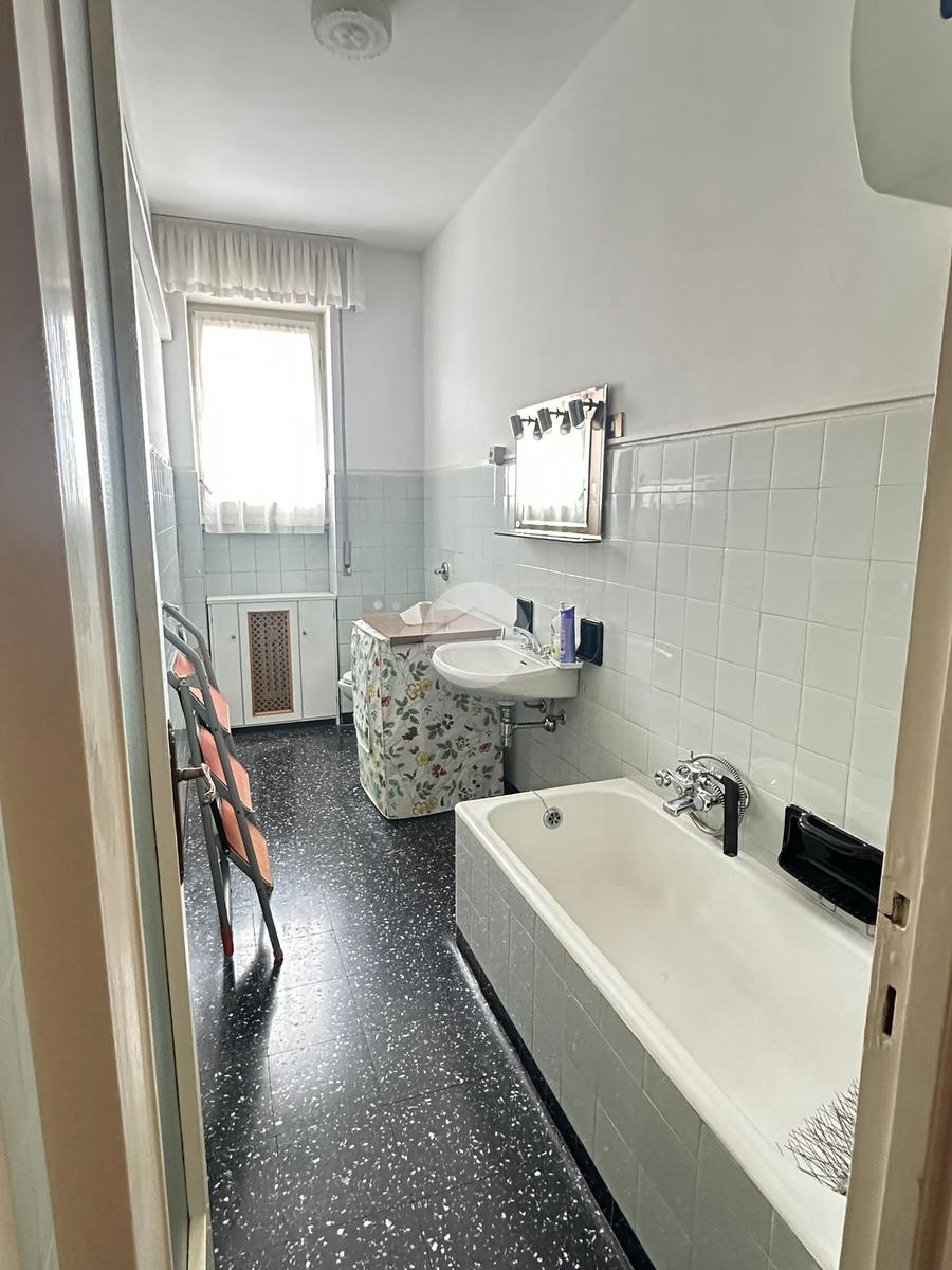 Proseguendo dal disimpegno, con medesima esposizione ed affaccio della zona giorno, troviamo poi la camera da letto matrimoniale ed un bagno finestrato dotato di vasca.