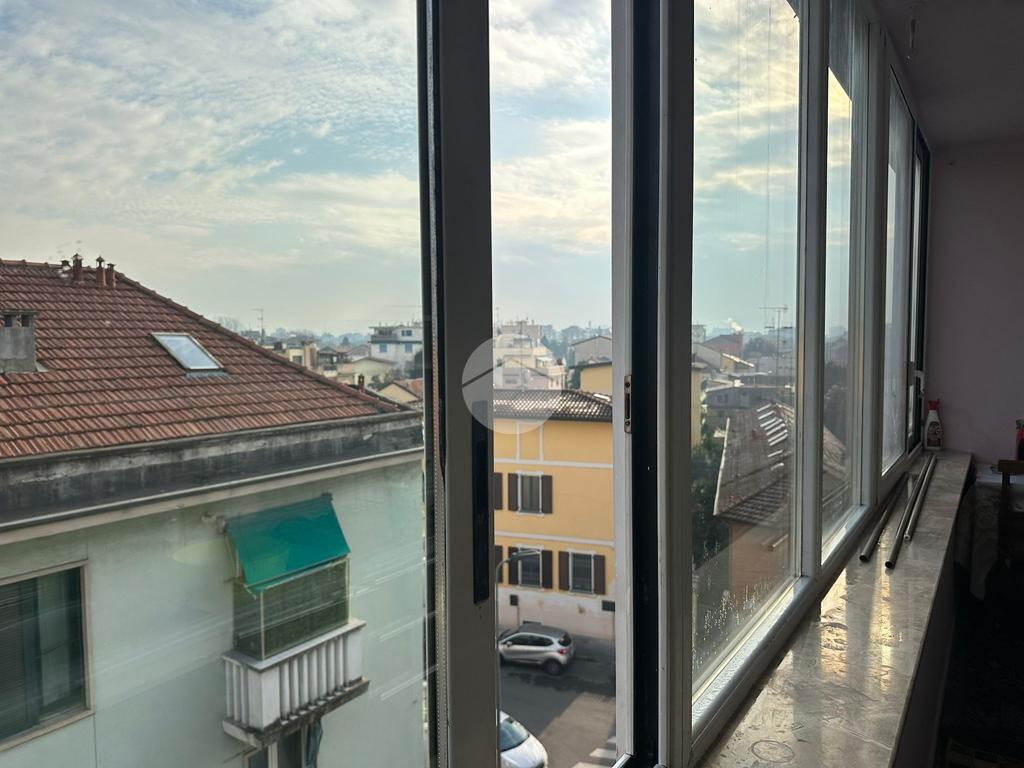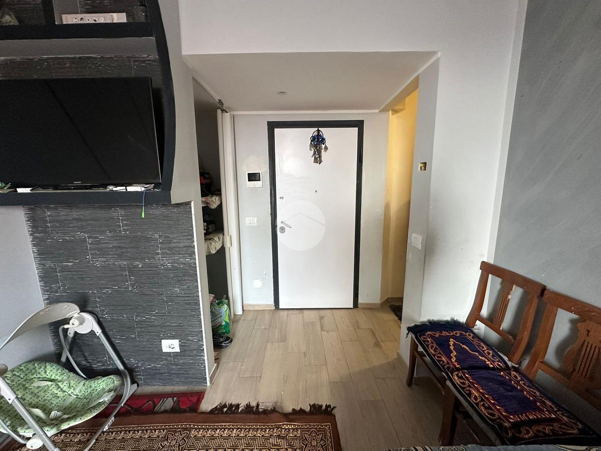 Ingresso in disimpegno, dal quale possiamo accedere ai vari ambienti della casa e dove troviamo, subito di fronte il soggiorno dotato di portafinestra che conduce sul comodo balcone verandato ad oggi adibito a zona cucina, con affaccio libero sulla Via Scanini.