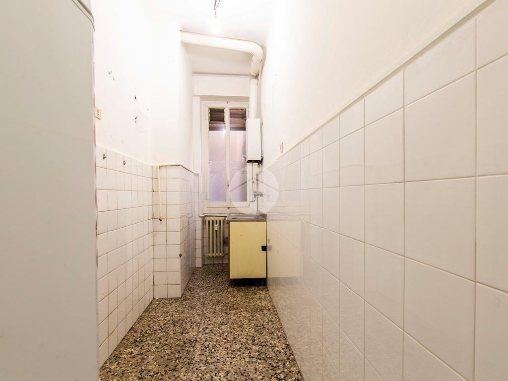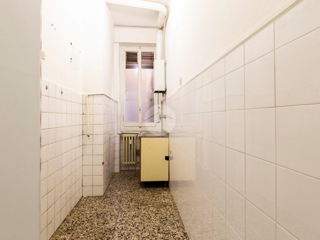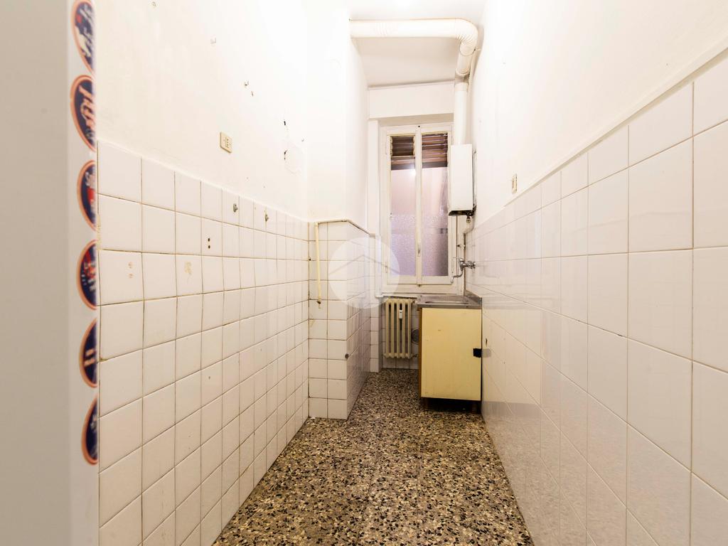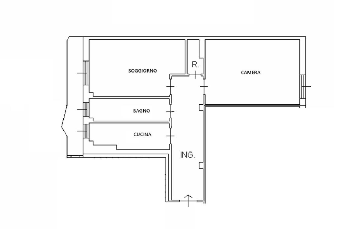 Ingresso in corridoio, dal quale possiamo accedere ai vari ambienti della casa e dove troviamo, subito sulla sinistra, la cucina abitabile, fornita di finestra con affaccio tranquillo sul balcone. Proseguendo, a seguire, con medesima esposizione ed affaccio, troviamo il bagno anch’esso finestrato e il soggiorno luminoso e dotato di portafinestra che conduce sul balcone che affaccia sul cortile condominiale. Proseguendo poi dal disimpegno, troviamo infine la camera da letto matrimoniale, con opposta esposizione ed affaccio rispetto alla zona giorno.